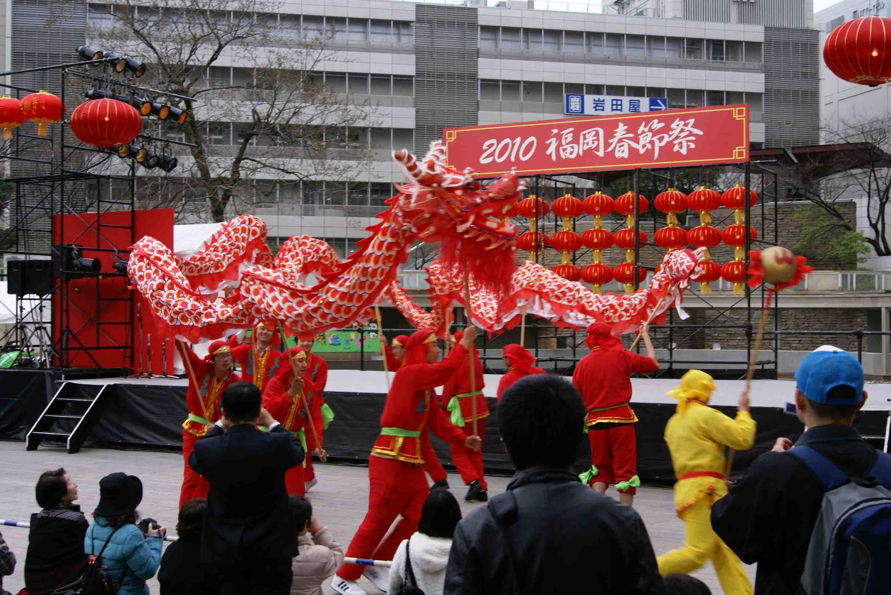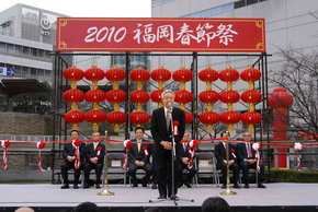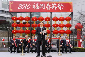 2010年2月27日上午,“2010年福冈春节庙会”在福冈市中心的警固公园隆重开幕,这是继“2009年福冈春节庙会”成功举办后,当地华侨华人与日本各界朋友共贺新春的又一次盛会。日本首相鸠山由纪夫专门为庙会发来贺电。