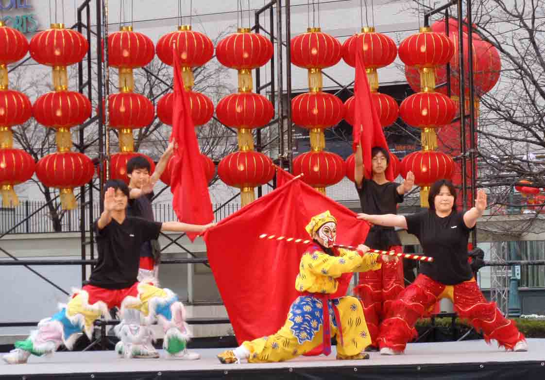 庙会期间,共有40余家民间团体和个人参加演出,向游客展演了150多个中日民俗节目,比去年多出50多个节目。演出时间约1000分钟,从开幕至闭幕节目演出不间断,中间无空场。舞龙舞狮、四川变脸、中华武术等去年保留节目依然火爆,美猴王、大头娃娃和秧歌等新增项目更是令观众流连忘返。席地而坐者、久立不离者占满整个舞台前,鼓掌声、喝彩声此起彼伏,掀起一轮又一轮高潮。