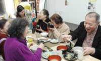 为了加强地域交流,日本爱媛县松山大学和爱媛大学两校的留学生共同组织的地域研究小组“五友会”于2月28日在松山市柳井町商店街的居酒屋举办老年人招待会。8名年龄在50~70岁的老人参加了这个招待会,他们一边品尝学生们亲手做的菜肴,一边开心地聊天。