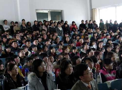 阶梯教室里座无虚席。(日本额你新华侨报网图片)