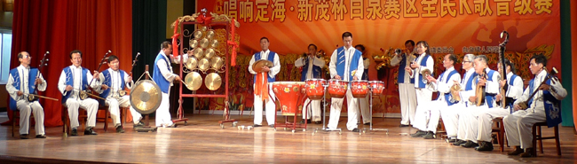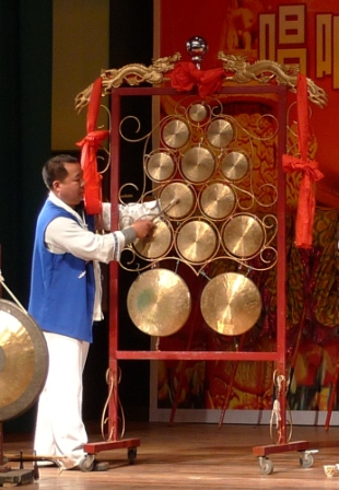 「鑼鼓」は、「十三面鑼(十三音排鑼)」(十三面の銅鑼)と「五面鼓(五音排鼓)」(五面の太鼓)の二種の打楽器を指し、古来より出港、帰港、進水式など、漁における様々な場面で、大漁と海上の安全を海の神に願って、港や船上で打ち鳴らされました。