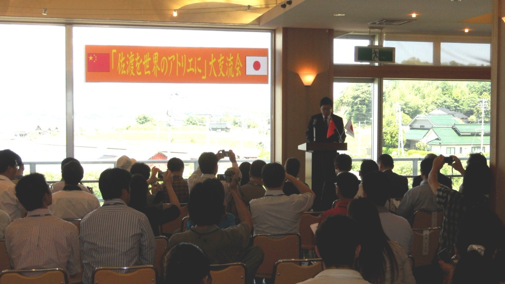 佐渡市长高野宏一郎、议长金光英晴和观光协会理事长木村英太郎分别在交流会上致辞,热烈欢迎王华总领事一行和中国相关院校师生的到来,介绍了佐渡岛丰富的旅游资源和独特的风土人情。并提出伴随日本放宽对华旅游签证,希望以此次交流会为契机,有更多的中国游客来到佐渡岛旅游观光。