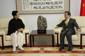 坂东玉三郎向程永华大使介绍了他祖孙三代与中国京剧以及与梅兰芳大师和梅葆玖先生艺术交流的渊源,并介绍了他本人学习昆曲及参加昆曲演出的情况。坂东玉三郎还邀请程永华大使10月观看其与苏州昆剧院在东京联合演出的昆曲《牡丹亭》。程永华大使说,目前中日两国文化交流频繁,戏曲界亦是如此。京剧、昆曲与歌舞伎分别是中日两国有代表性的传统艺术,通过这些交流有助于加强两国人民的相互理解和友谊。希望坂东先生今后继续积极致力于中日文化交流。