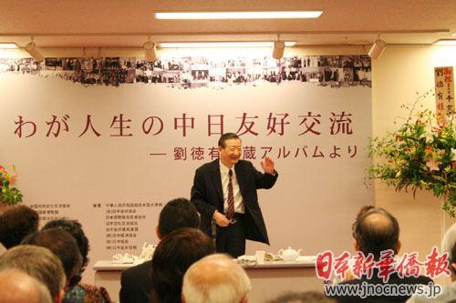 刘德有在展览开始时发表演讲。(日本新华侨报网图片)
