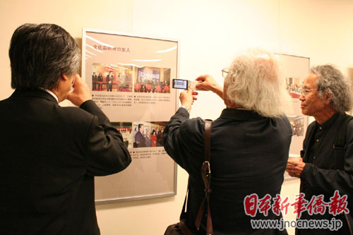 中国驻日本大使程永华与嘉宾一起为刘德有照片展剪彩。(日本新华侨报网图片)