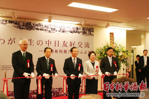 中国驻日本大使程永华与嘉宾一起为刘德有照片展剪彩。(日本新华侨报网图片)