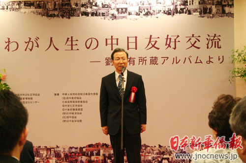 中国驻日本大使程永华在照片展开幕式上致辞。(日本新华侨报网图片)