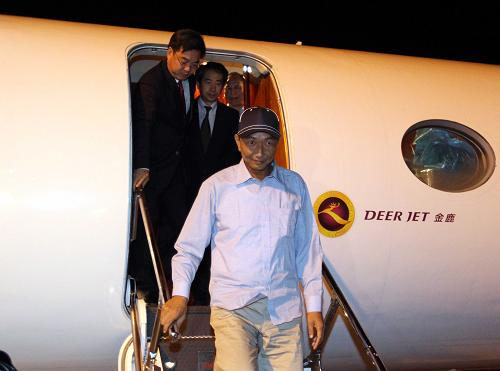 9月25日凌晨,被日本在钓鱼岛海域非法抓扣的中国渔船船长詹其雄搭乘中国政府派出的包机安全返抵福州。中国外交部部长助理胡正跃、福建省副省长洪捷序到机场迎接。
