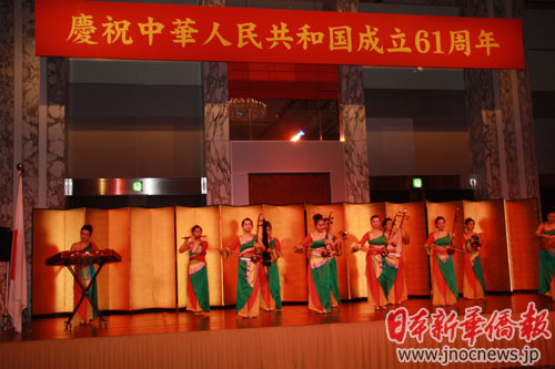 招待会上,来自中国的演奏团体奉上精彩的演出。(日本新华侨报网图片)