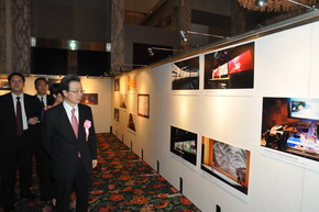 日本黄山美术社社长陈建中详细观看了招待会现场展出的由中国外交部和文化部制作的反映上海世博会盛况的精美图片。他说,世博会常常成为一个国家崛起的标志之一。现在,我们还应该意识到,一个国家在崛起的时候会有来自内外的各种压力。通过看这些照片我就更体会到,中国是一定能够承受各种压力、化解各种压力而和平崛起的。