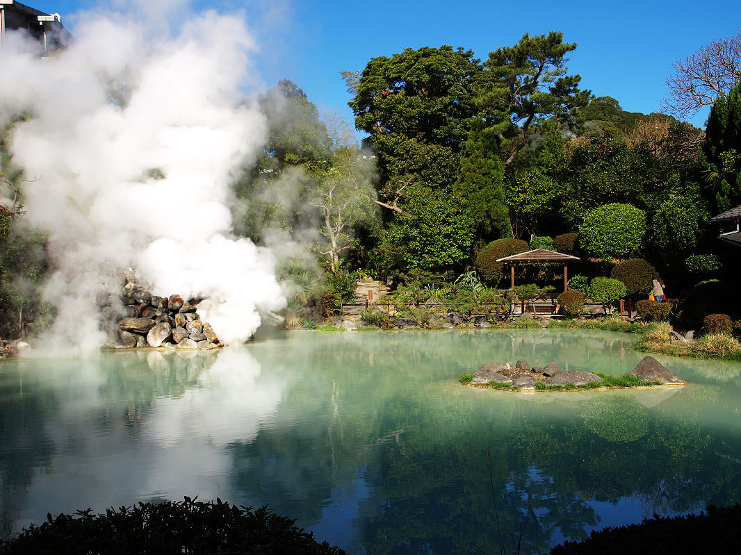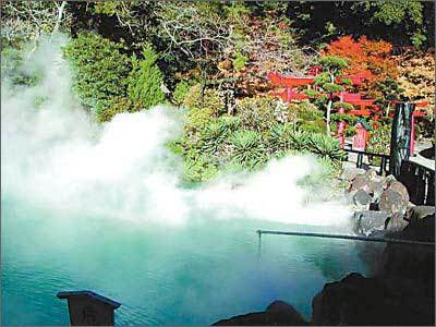 作为著名的疗养地,别府在1950年就被指定为国际温泉文化都市。其温泉水质丰富多样,据说目前全球共发现11个温泉品种,而别府就拥有十种之多,包括酸性、硫磺、食盐、铁和明矾等水质种类。其中不少温泉虽然不能泡,却十分特别。像和尚头地狱,就是一个翻腾着的泥浆温泉,别看它外表“斯文”,一点烟雾都没有,事实上其温度已接近100摄氏度,浅灰色的泥浆不断地由中央冒起一个小泡,并向四周扩散出去,让人联想到有和尚在水中挣扎时露出的光头,场面颇为恐怖。而气泡破裂时发出的“噗噗”声,则又像一群和尚在念经。
