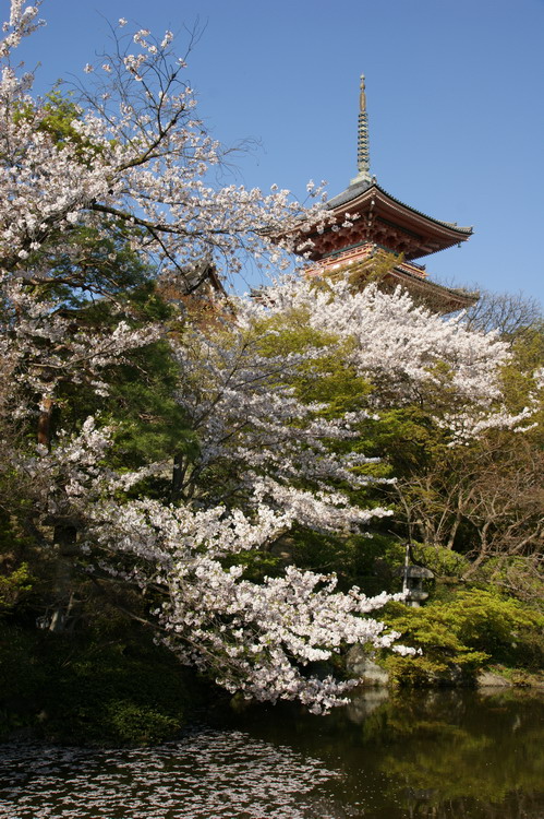 看樱花的最好去处首选古城京都。京都的樱花充满了古朴静谧之美,尤其是箱根国立公园清水寺的樱花,充满着凄冷的美感。站于用杉木圆柱在岩石边搭建而成的“清水之舞台”,欣赏着青山绿水共同衬托着那一簇簇淡雅的粉红,樱花在清水寺拥有了灵魂。