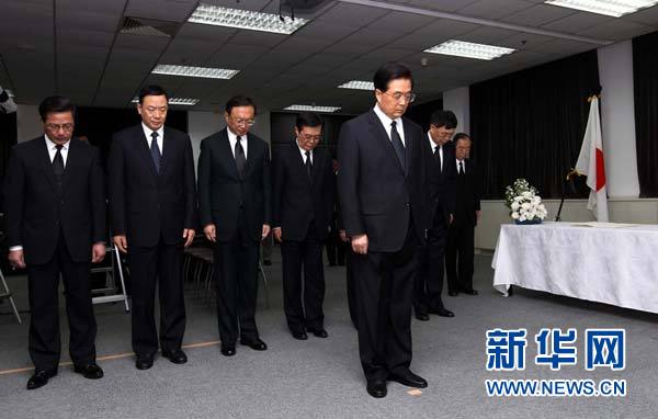 据新华社报道,中国国家主席胡锦涛3月18日下午前往日本驻华使馆吊唁日本“3·11”地震遇难者,并简短会见日本驻华大使丹羽宇一郎。