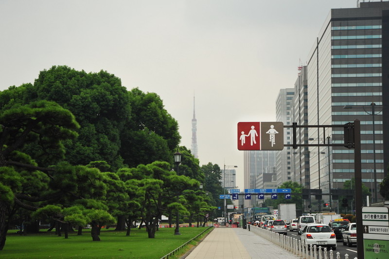在日本,还是有少部分人骑自行车,有部分公司职员,也有很多学生。日本政府把人行道分为两部分,一半是行人的,另一半是自行车行的,然后跟机动车道通过护栏隔开。