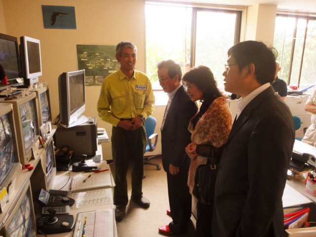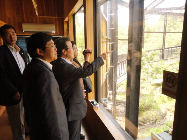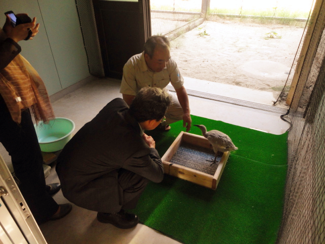 程大使一行首先参观了新近落成并对外开放的“朱鹮交流广场”,近距离观察了朱鹮的生存栖息环境。随后,程大使一行前往“朱鹮复归循环中心”,在环境省朱鹮首席自然保护官长田启的陪同解说下,详细了解了朱鹮从孵化、成长、放飞、筑巢等的全过程,并与朱鹮幼鸟“亲密接触”。当天恰逢第八次朱鹮野外放飞仪式,程大使夫妇还饶有兴致地观赏了朱鹮刚刚放飞后翱翔蓝天的美丽身姿。