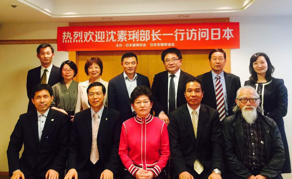 (安徽海外联谊会会长沈素琍(前排左三)率团访问日本安徽“两会”)