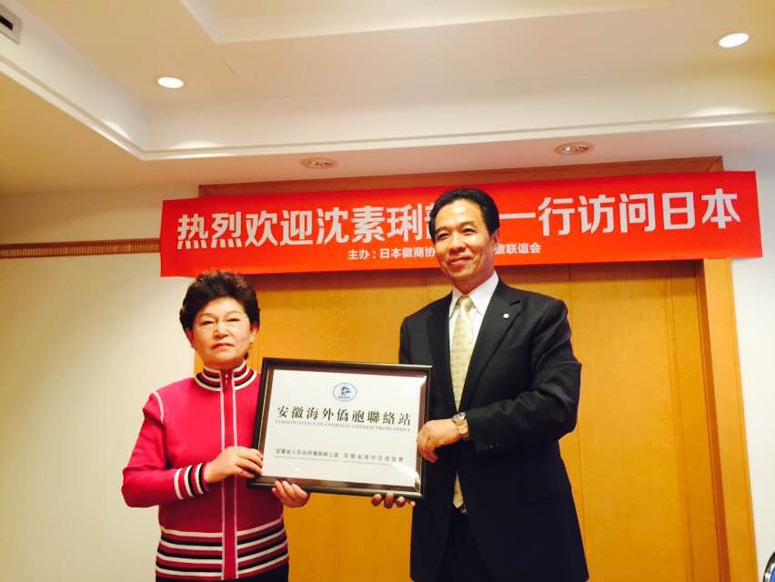为表彰鼓励日本安徽“两会”的工作成绩和凝聚力、发展力,安徽省人民政府侨务办公室、安徽省海外交流协会联袂授予“两会”安徽海外侨胞联络站的特殊荣誉和使命,并举行了授牌仪式。