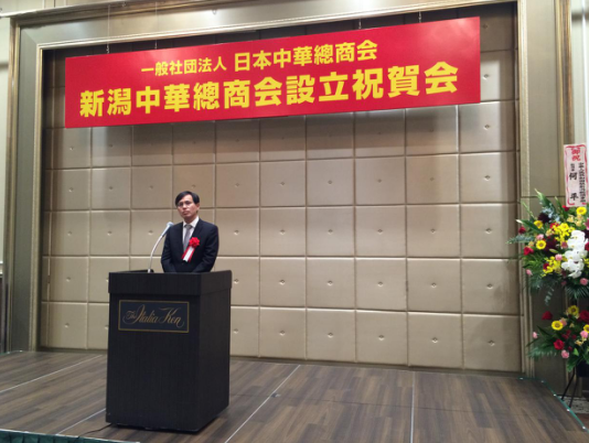 新潟县副知事高井盛雄在致辞中表示,自2010年中国驻新潟总领事馆创立以来,新潟与中国在经济、文化、教育等各领域的交流越来越广泛、深入。在新潟的外国企业中,中国企业的数量高居榜首,同时,多年来中国始终是新潟的主要出口对象国。期待新潟中华总商会能为进一步促进日中两国经济贸易交流发挥积极作用。
