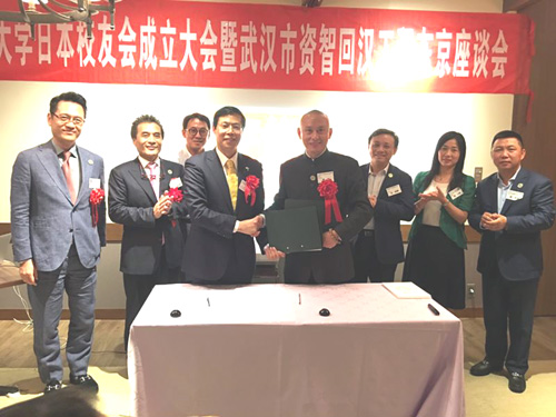5月21日,武汉大学日本校友会在东京正式成立,徐耀华当选会长,武汉大学校友企业家联谊会组团前往祝贺。著名企业家和经济学家毛振华、天壕环境董事长陈作涛、正龙保险董事长兼联谊会秘书长蹇宏等出席武大校友会仪式和经济论坛,与中国留日同学总会会长汪先恩会晤,并签署战略合作框架协议。