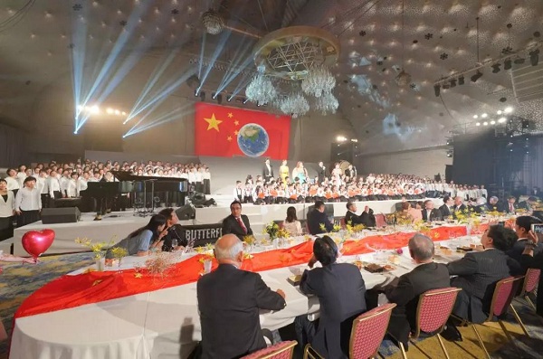 中国驻日本大使孔铉佑热情洋溢地致辞。他回顾了新中国70年的历史,展望了新时代中国的未来。孔铉佑大使特别肯定,“70年来,海外旅日侨胞人数从11万到现如今近百万,侨胞们遍布日本各行各业。海外华侨华人的总体实力和社会地位有了显著提升,海外华侨华人在维护祖国统一,促进中日友好方面始终发挥着至关重要的作用。70年来,海外侨胞始终与祖国同呼吸,共命运。”