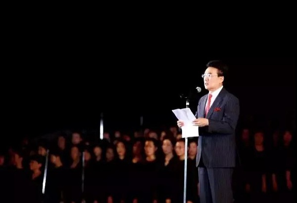 男主持人吴汝俊激情开场——“70年前,在古老的东方大地上,一个崭新的中国——中华人民共和国诞生了。”女主持人奥萨卓玛动情而述——“70年前,毛泽东主席在北京天安门城楼向全世界庄严宣告,中国人民从此站起来了!”