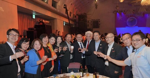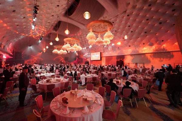 主桌席上嘉宾阵容庞大。中国驻日本大使孔铉佑的座位右侧和左侧分别是日本前首相福田康夫和日本前首相鸠山由纪夫这样两位重量级人物。主持人介绍到嘉宾——中华人民共和国香港特别行政区政府驻东京经济贸易代表处代表胡钜华的时候,全场报以热烈的掌声。