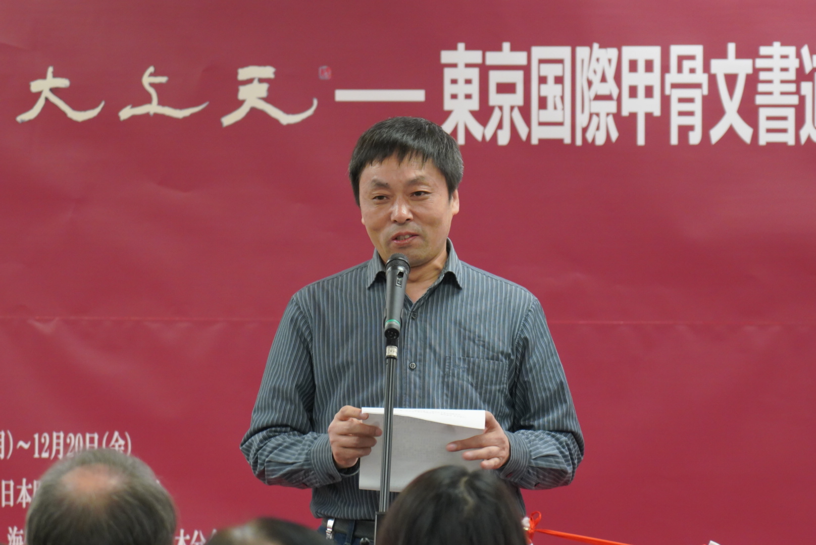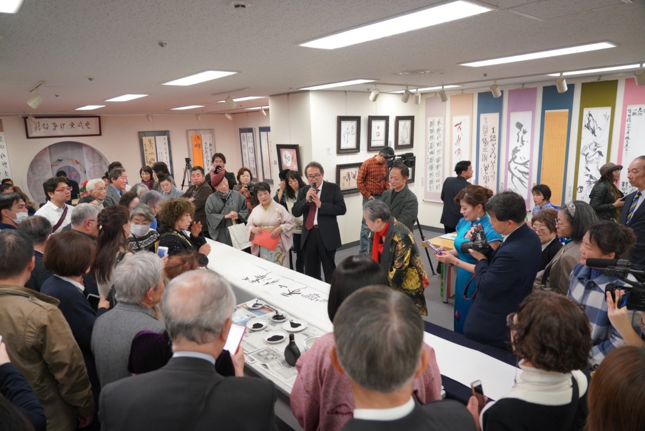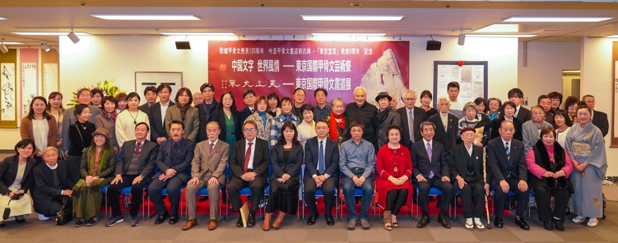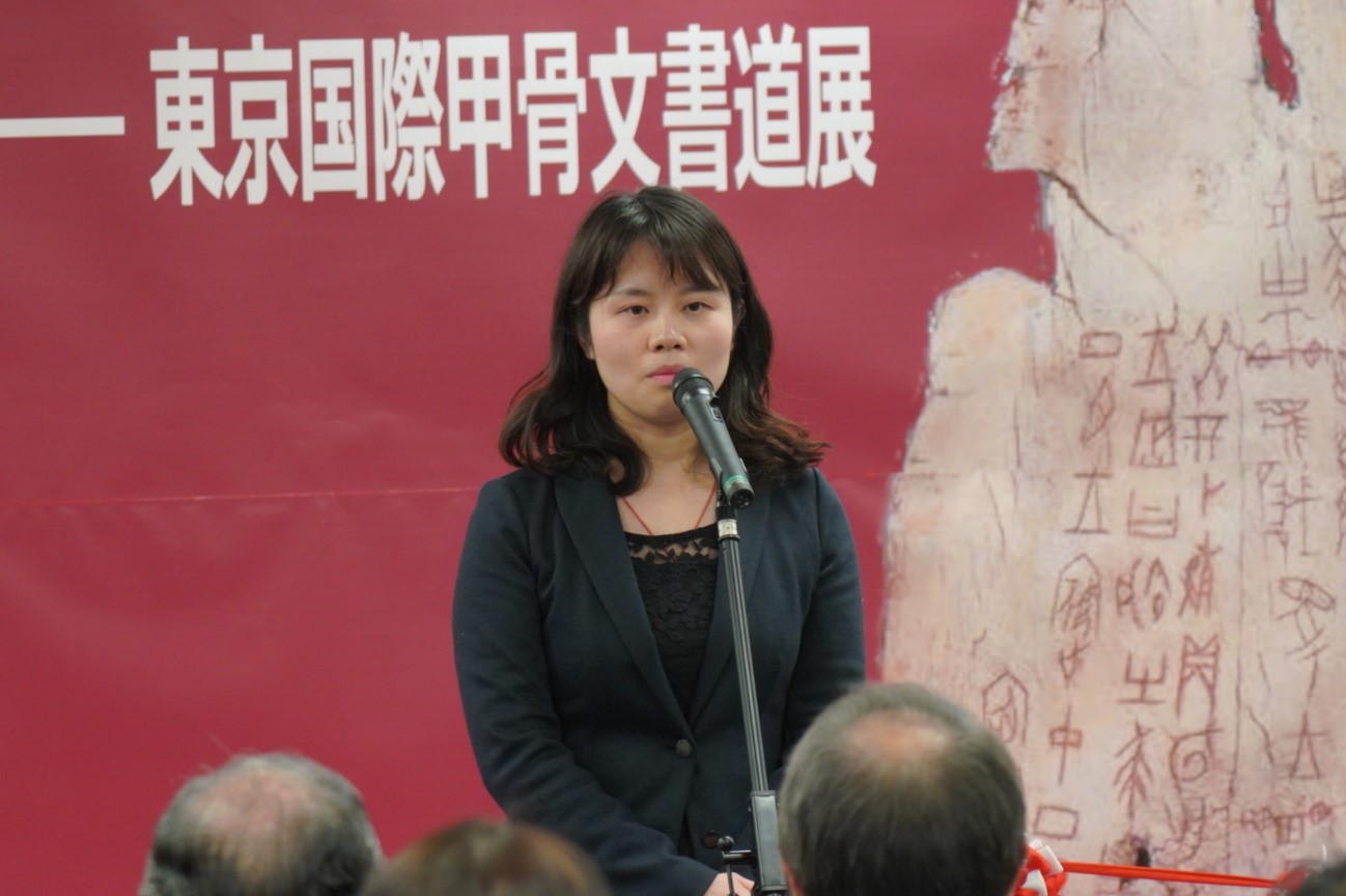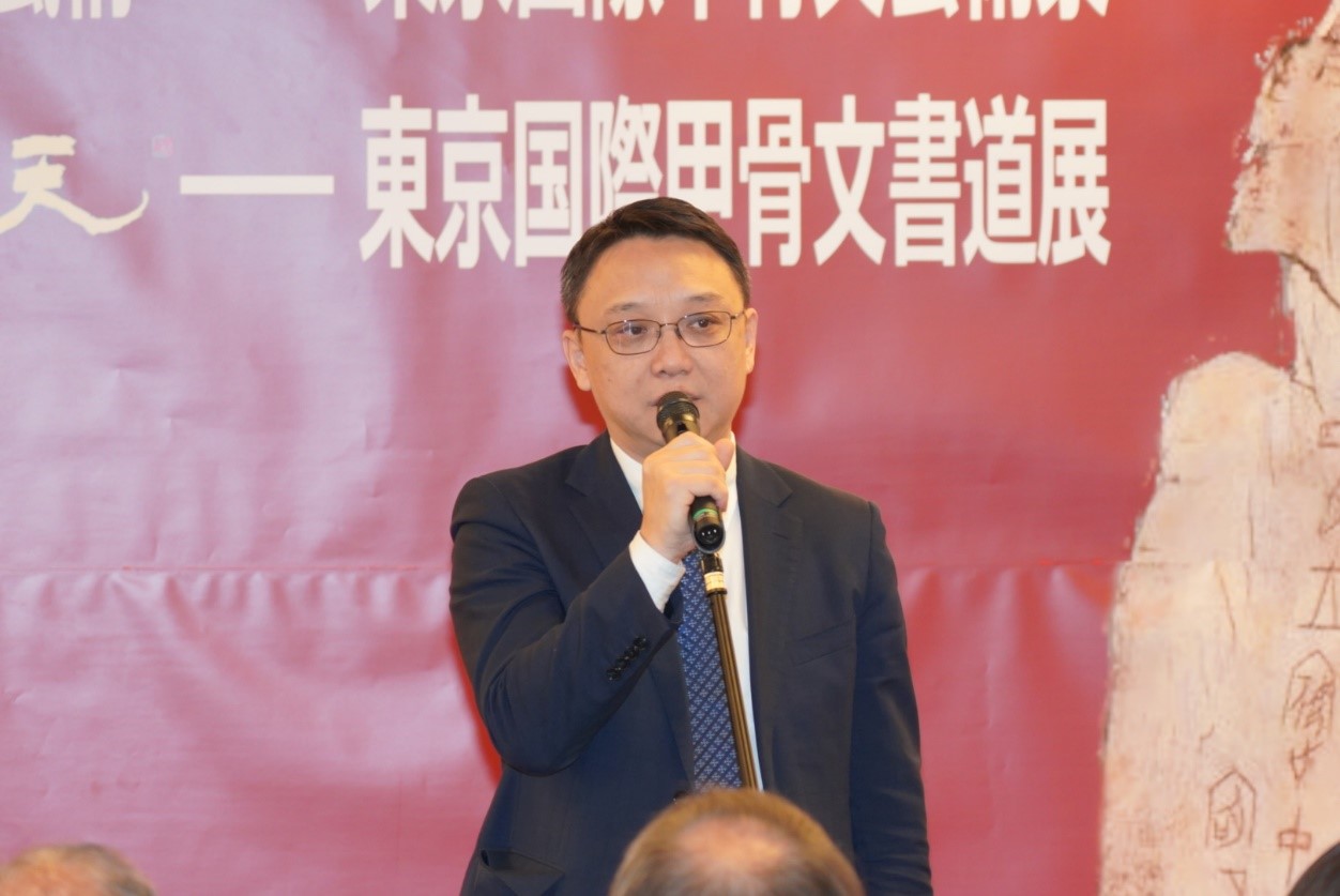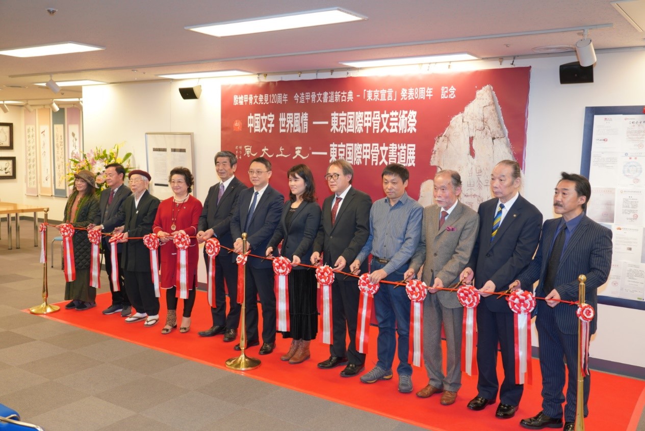 东京中国文化中心主任罗玉泉、中国驻日本大使馆二等书记官赵歆、日本甲骨文书道研究会会长张大顺、中国江苏省甲骨文学会副会长陈爱民、日本书镜院理事须藤玉诚、殷墟甲骨文学校校长邓大平出席了开幕式并致辞。另有中日甲骨文研究者、爱好家50余人参加了本次开幕式。