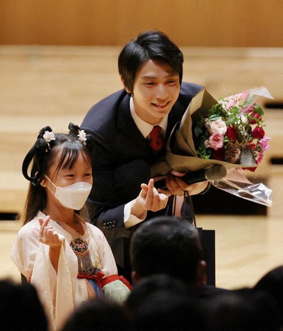 “今天,是日中邦交正常化值得纪念的日子。能够从仙台赶来参加这场活动是我的荣幸,今年2月的北京奥运会期间,中国朋友们的亲切与温厚,令我深受感动,是大家的支持在推动着我前进。日本与中国是邻国,所以更应该保持良好的关系,我也希望尽一份力量。从今年7月开始,我成为一名职业花样滑冰运动员,我将继续在台上挑战4A跳,努力将更好的表演带给日本和中国的人民。我希望能成为促进日本和中国增进相互了解和交流的催化剂。”