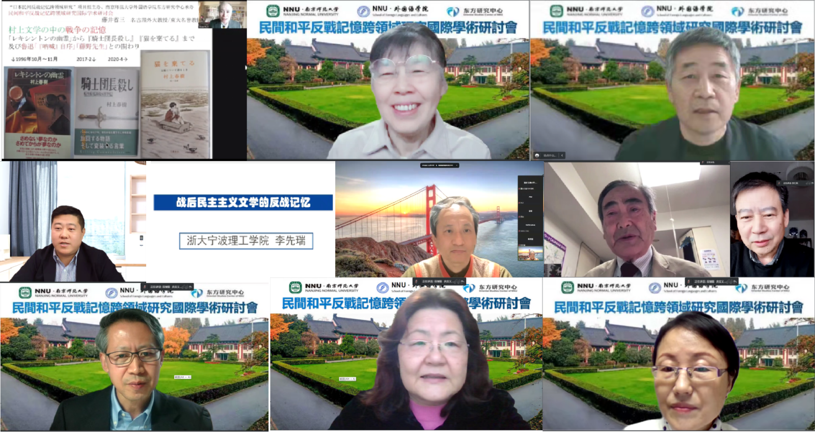为弘扬正确历史观,促进中日和平友好发展、相向而行,积极践行人类命运共同体理念,南京师范大学外国语学院、东方研究中心与国家社科重大项目“日本民间反战记忆跨领域研究”课题组于12月4日举办了国际学术研讨会。此次国际研讨会中日韩三国20余位专家、12位青年学者做主题报告,一同发出和平之声。会议全程Zoom与腾讯会议同时进行,计602人、超1300人次参会。