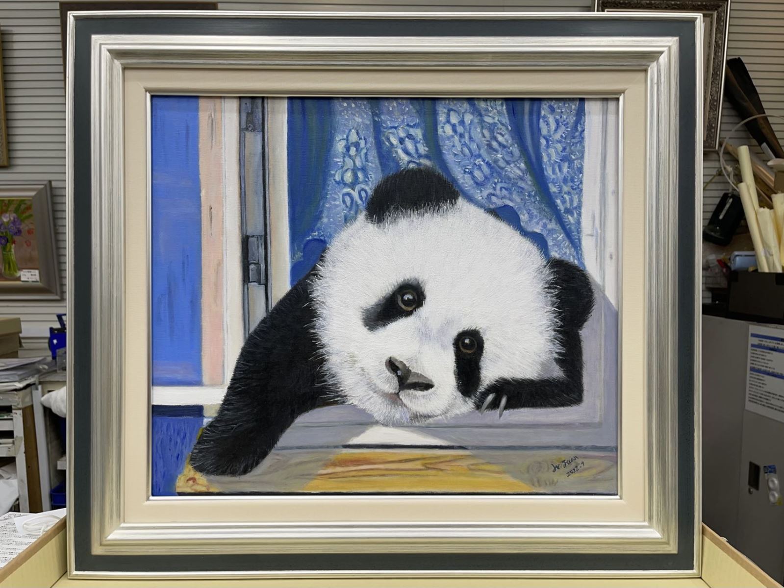活动现场,在获奖作品《熊猫》前,前来观摩的中日艺术爱好者络绎不绝。这幅作品以生活在上野动物园的熊猫“香香”为原型,通过细腻生动的笔触,别出机杼的构图,清丽悦目的设色,展现了作为中日友好使者的“香香”,是何等的憨态可掬,为两国人民带来多少快乐与幸福。最为难得,也是最打动评委和观众的关键点之一,恐怕就是熊猫眼中闪过的那一抹忧郁。作为友好使者的熊猫在日本得到了无以计数的关注和爱,原定于2020年12月归国的“香香”,受疫情影响延迟至2023年春天,日本民众对陪伴了他们四年半的“香香”充满感情,吕娟则用神来之笔将“香香”的依依不舍表现的恰如其分,拨动心弦。