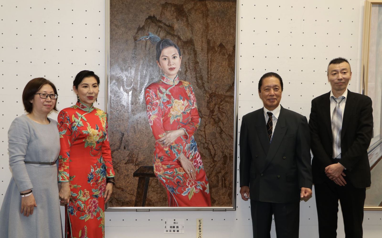 在第53届元阳展的参赛作品中,还有一幅特别值得一提的作品,那就是从中国走出的画家佐藤凯以吕娟为主题创作的、荣膺第53届元阳展Vic canvas奖的作品《飞翔》。画面中,身着朱红色团花图案旗袍的吕娟,斜坐高凳之上,背后是气势雄浑古韵悠然的北方山水,似有寓意主人翁出身背景之意。一只充满灵性的翠鸟正欲展翅,从画中人物的头顶飞离,代表了精神的升华和对更高的艺术层次的追求。